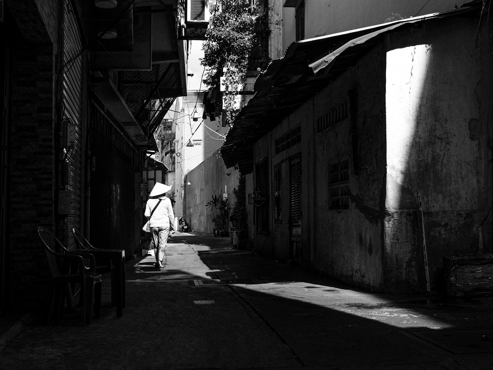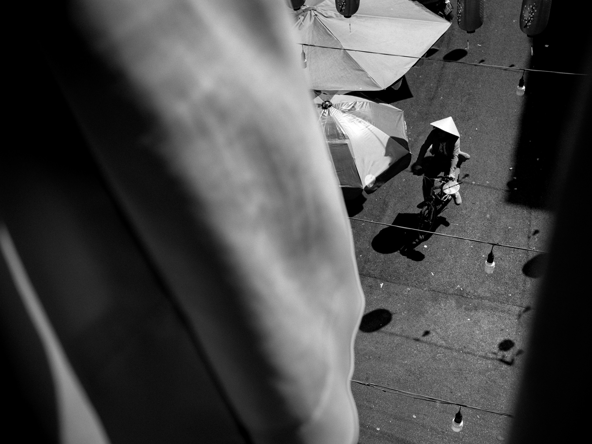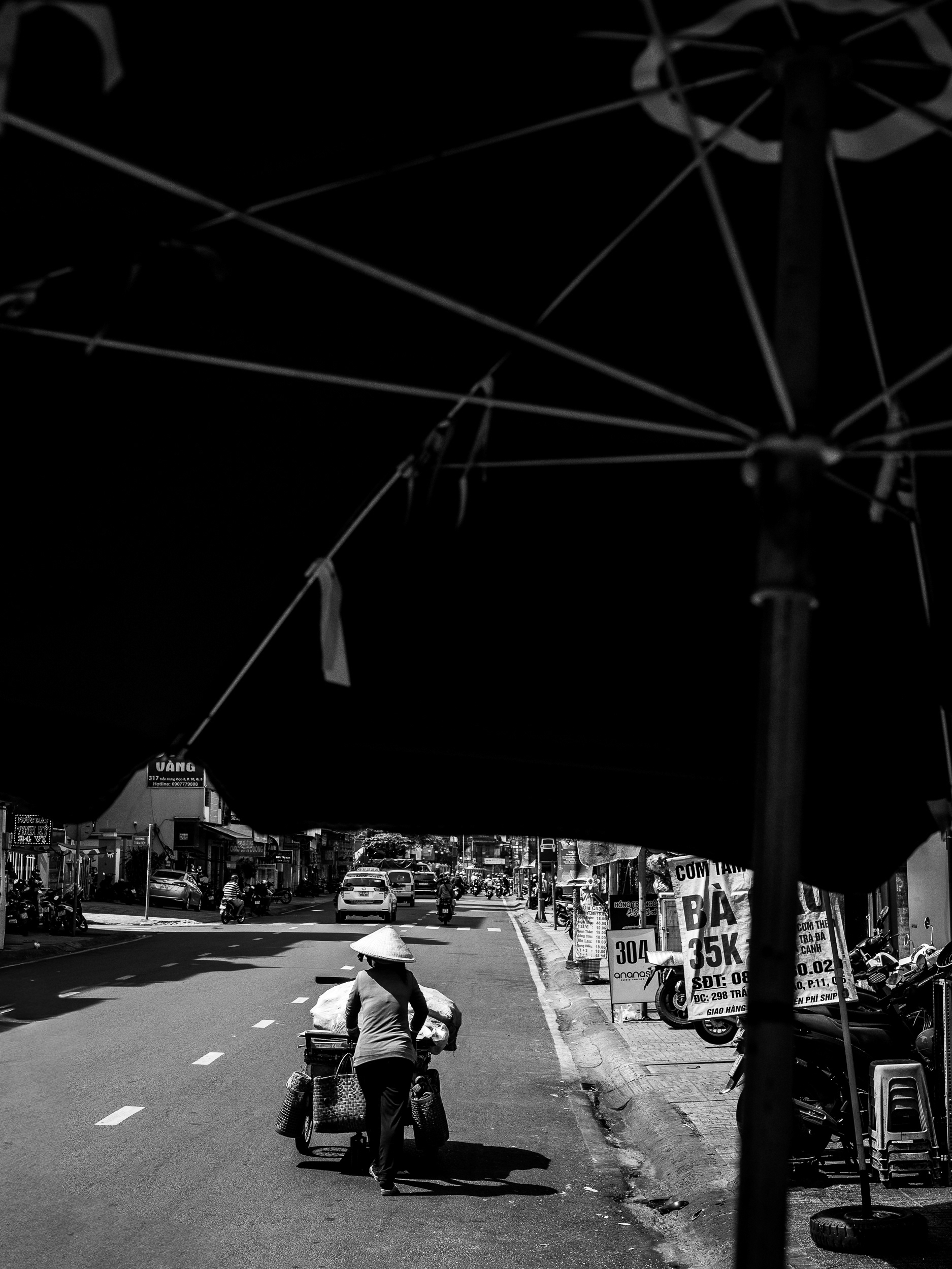 In 'Something Vietnam', the Nón Lá is more than a shield against the sun and rain; it is a poetic punctuation mark amidst the chaotic flow of the streets. Through the monochrome lens, it appears as a perfect circle embracing the silhouettes of the people.