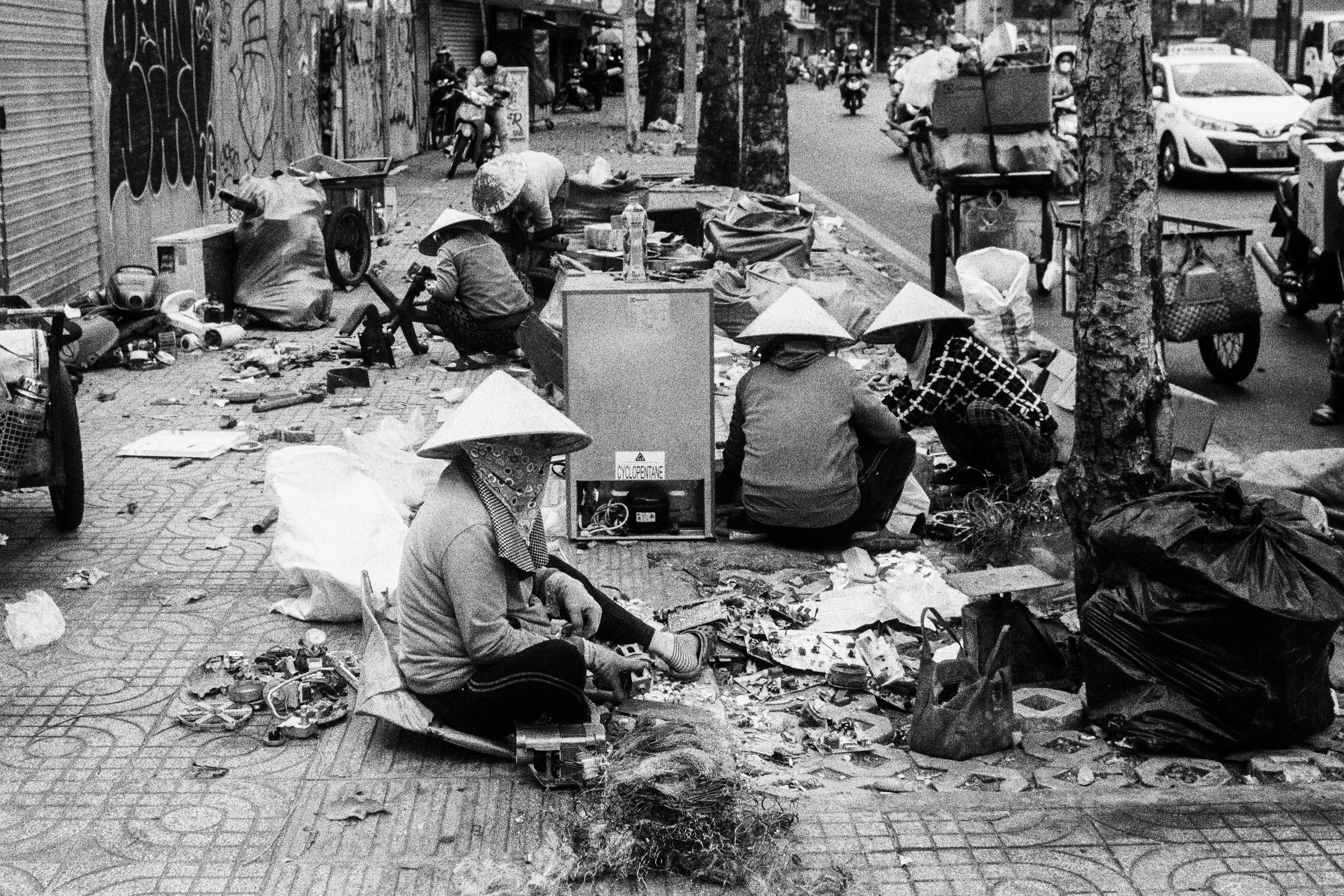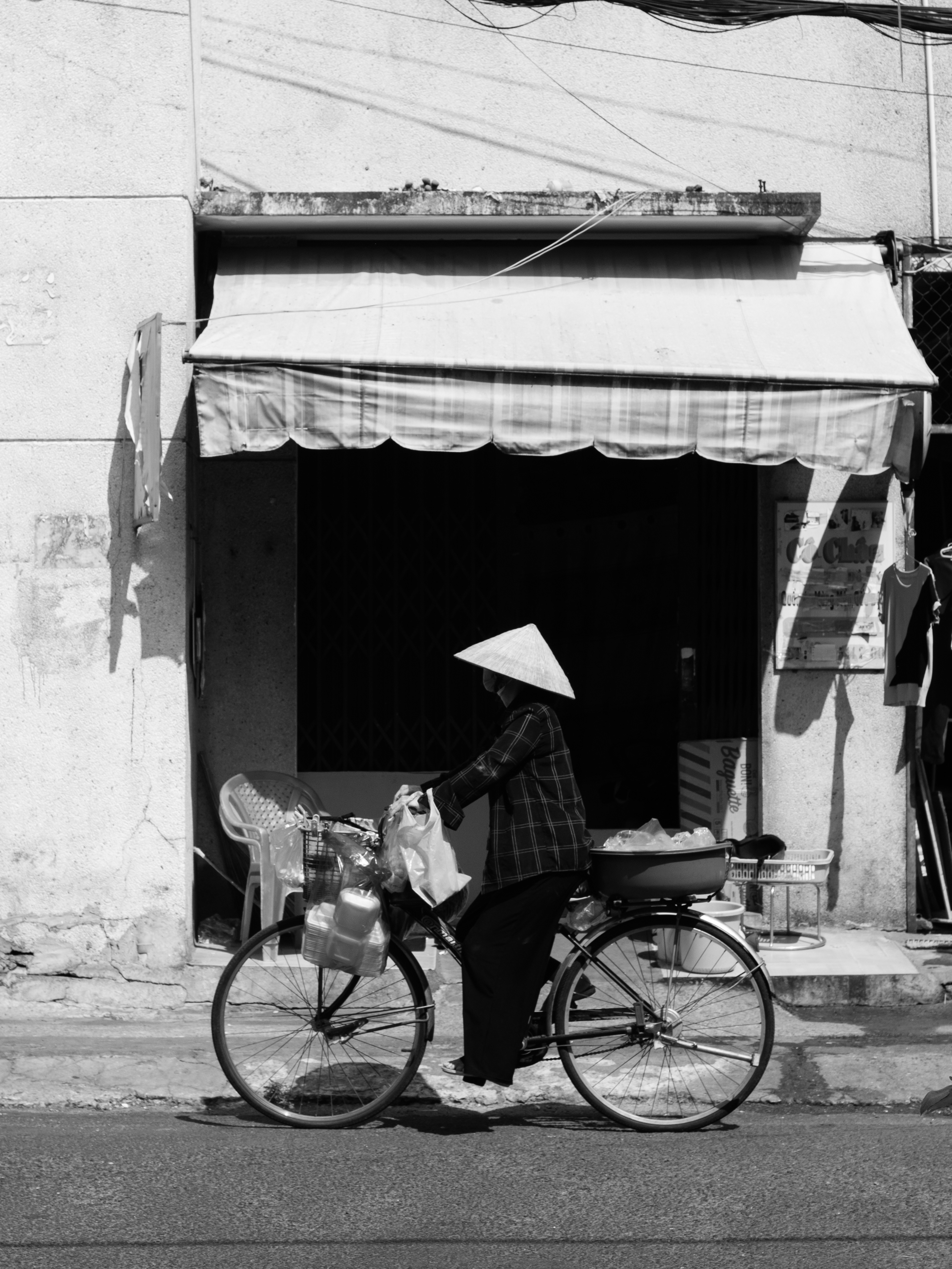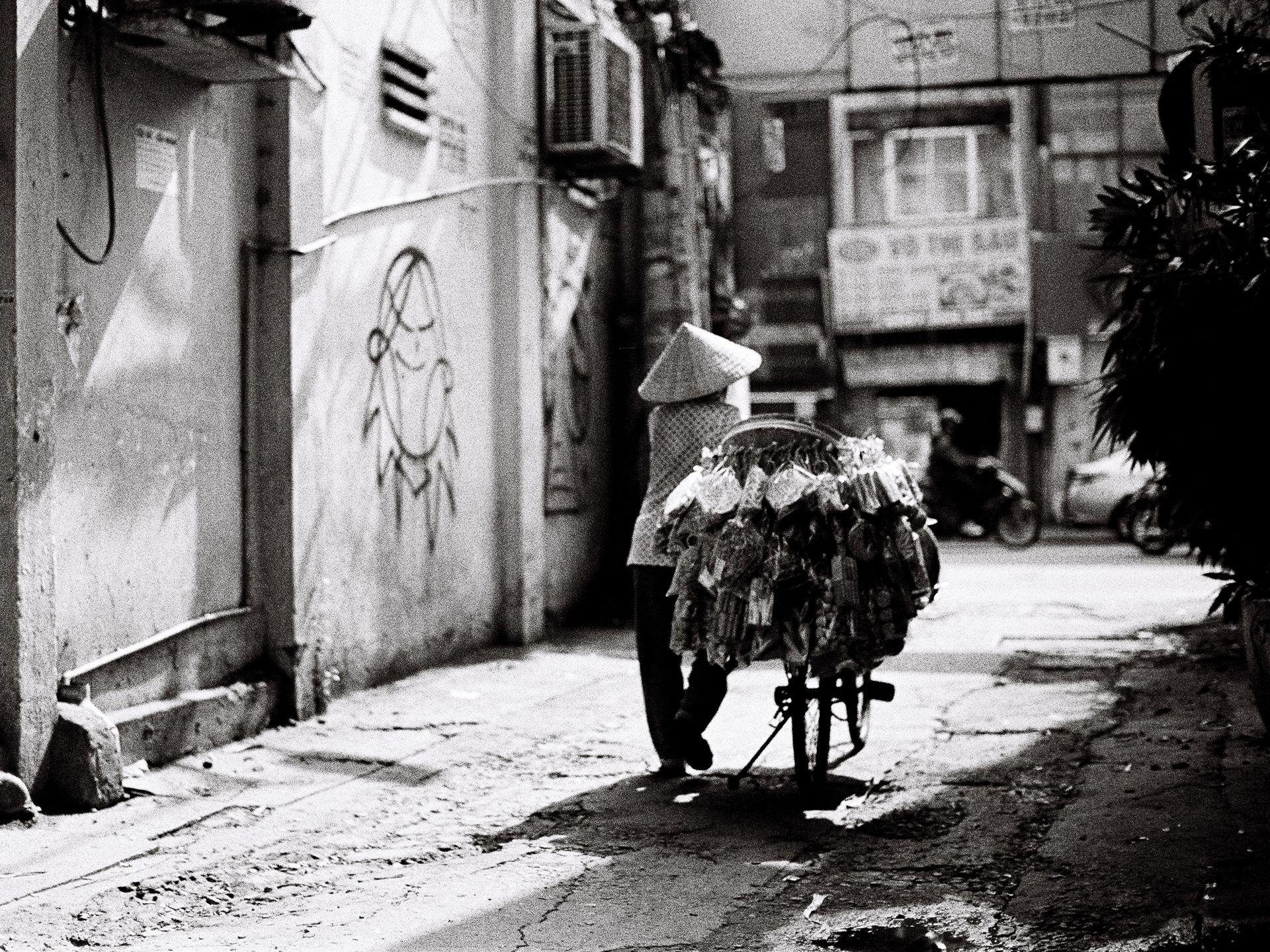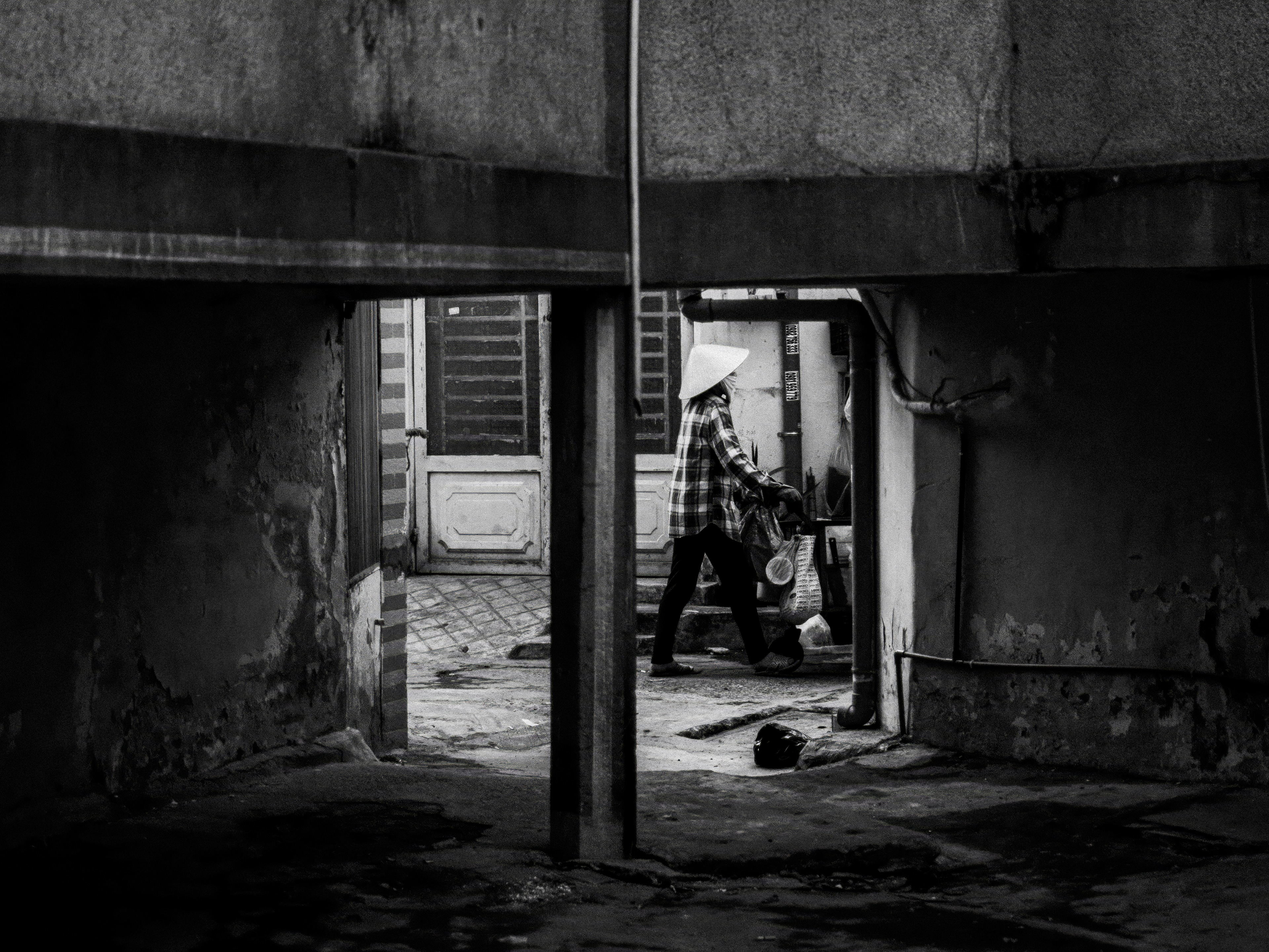 In 'Something Vietnam', the Nón Lá is more than a shield against the sun and rain; it is a poetic punctuation mark amidst the chaotic flow of the streets. Through the monochrome lens, it appears as a perfect circle embracing the silhouettes of the people.
